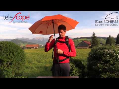 - can be easily attached on the shoulder straps and hip belt on nearly all kind of backpacks. Can be also attached on carrier-belt-system made by EuroSCHIRM. The umbrella can be extended in two stages and , incl. 2 adjustable fastening clips. Both hands remain completely free which is ideal for walkers who don´t want to go without trekking poles in rain , either. Also the perfect umbrella for nature photographers, etc.