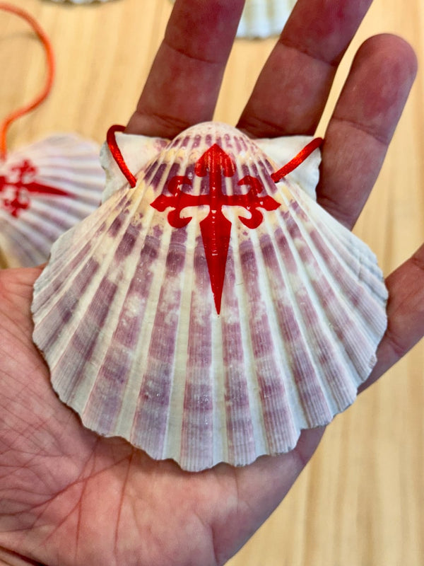Embrace the authentic spirit of the Camino with our Camino Shell from Galicia. Hand-picked from the coast, each shell is unique in size and color. Attach it to your camino backpack with the included red string and let your journey begin.