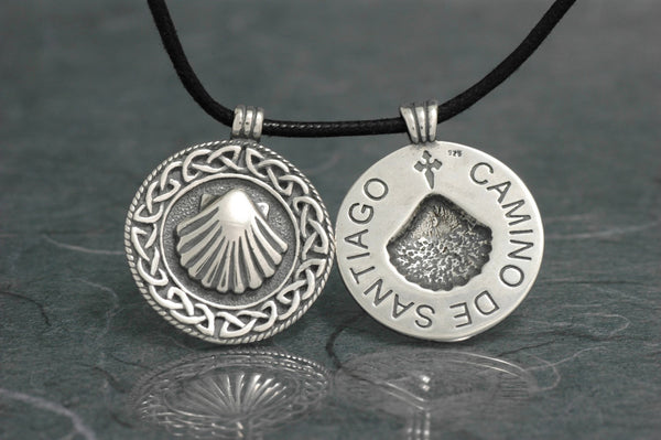 Camino de Santiago pendant that has a shell on the front, and "Camino de Santiago" engraved on the back. (The picture shows two, just to show you the front and the back).