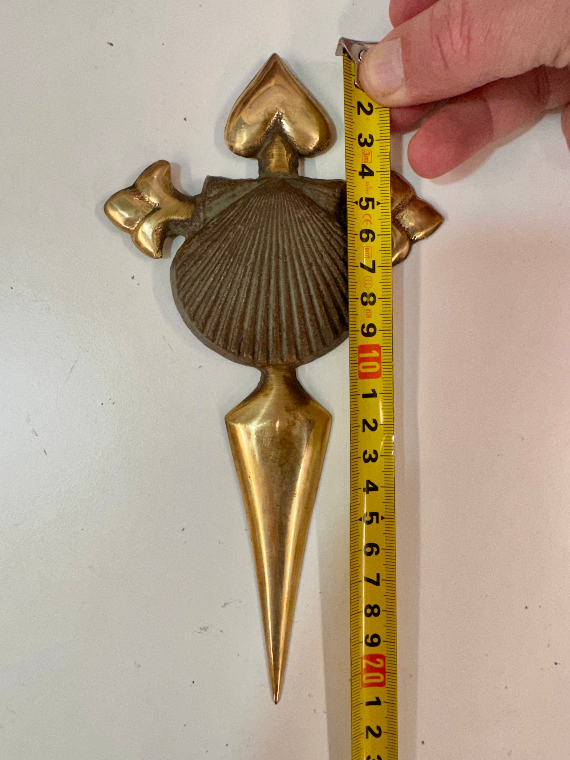 This handcrafted Santiago Cross embodies the spiritual essence of the Camino de Santiago through its iconic design.