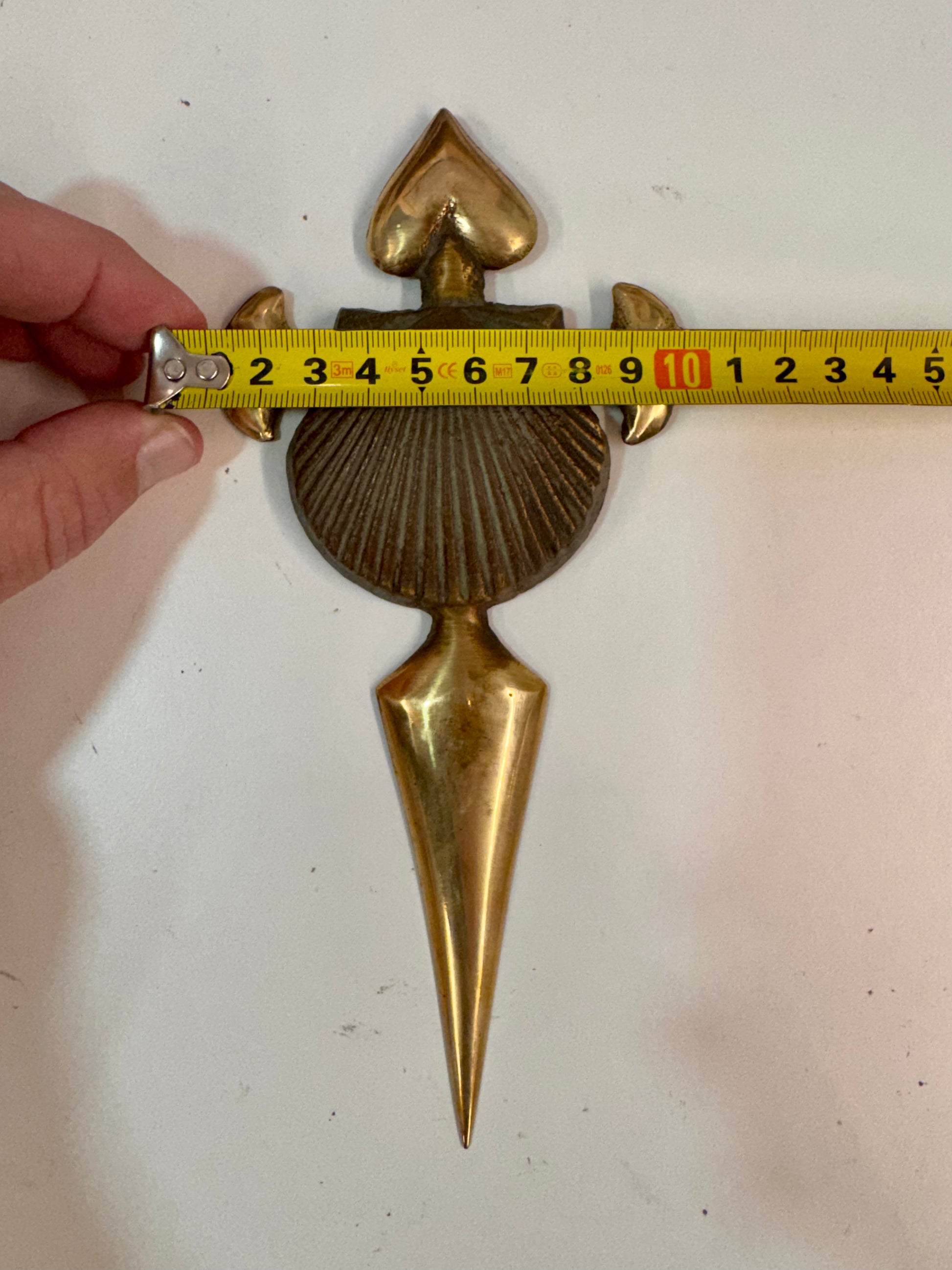 Standing 20cm tall and 10cm wide, this substantial bronze cross weighs 350g and features integrated hanging hardware for straightforward wall installation.